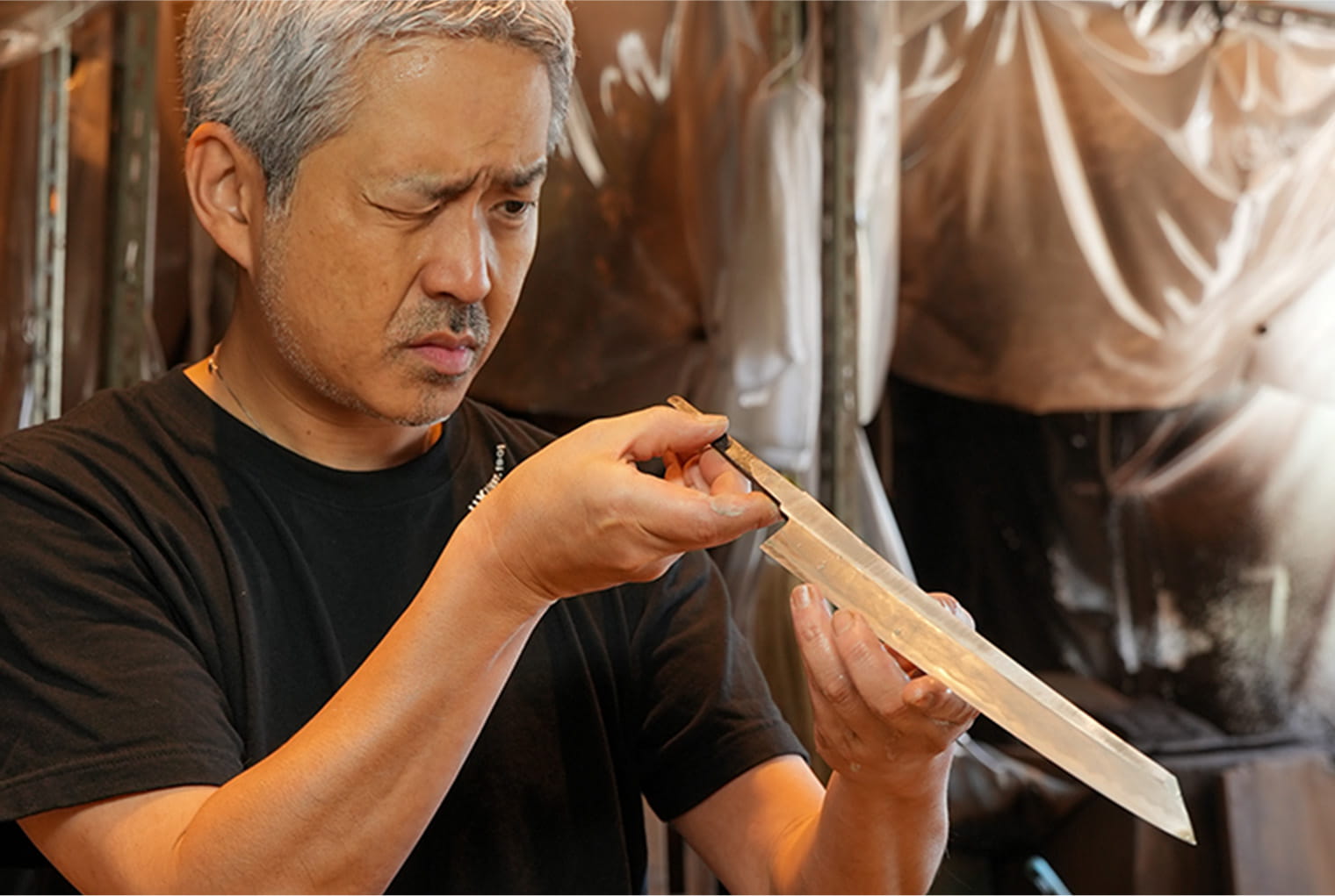 手に伝わる重み、切れ味に宿る哲学。 世桜で使われている包丁は、大阪・堺の老舗「實光刃物」が誇る匠の技によって生まれたものです。 四代目・實光俊行氏は、100年以上続く鍛冶の系譜を受け継ぎながらも、時代とともに進化する「使い手のための刃」を追求し続けています。 鋼に向き合う眼差し、火と水と対話する手仕事。そのすべてが、料理人の命とも言える一本に宿ります。 道具ではなく、信頼。世桜の味を支える名工です。